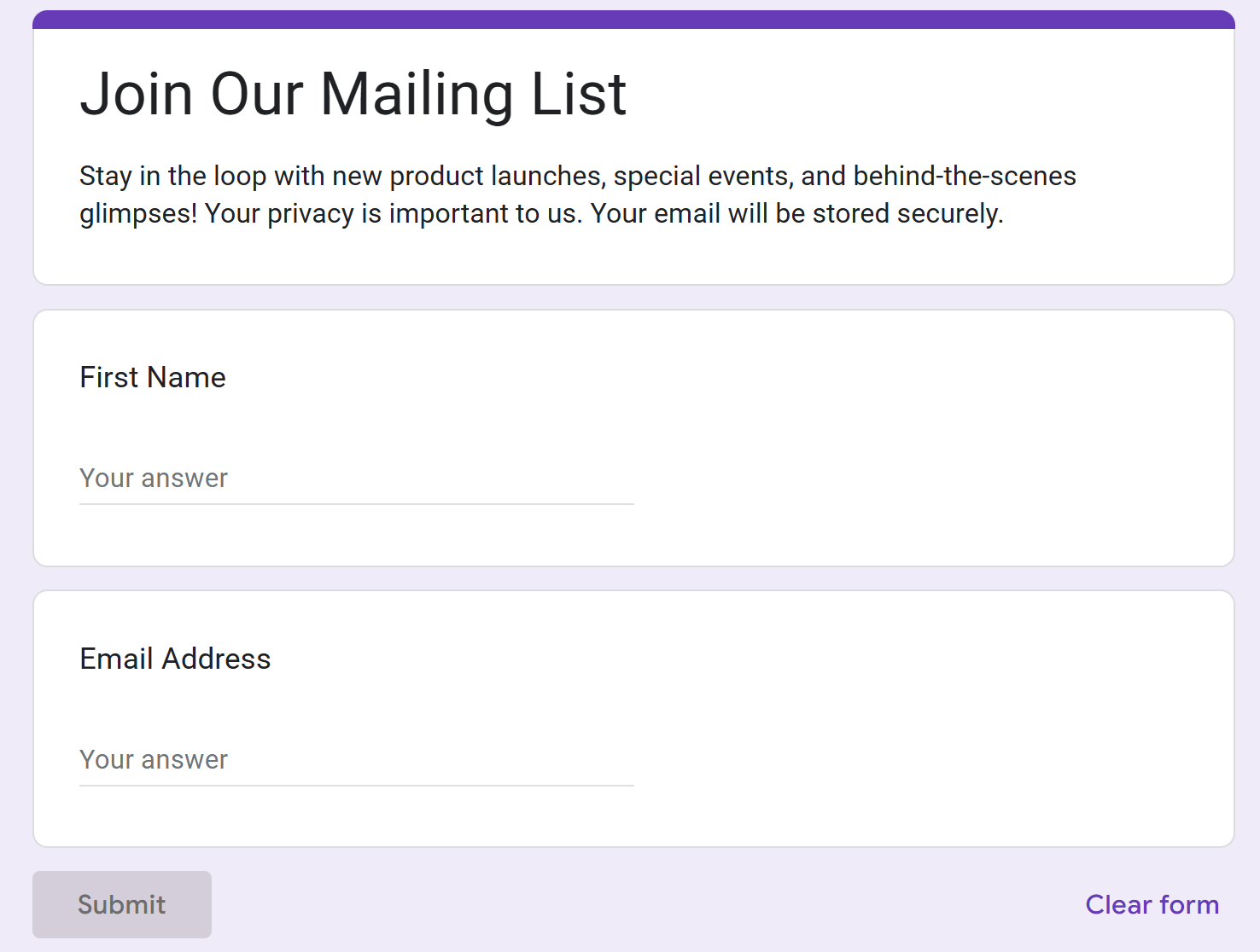 a method to collect subscriber names & email addresses - electronically and stored securely for privacy